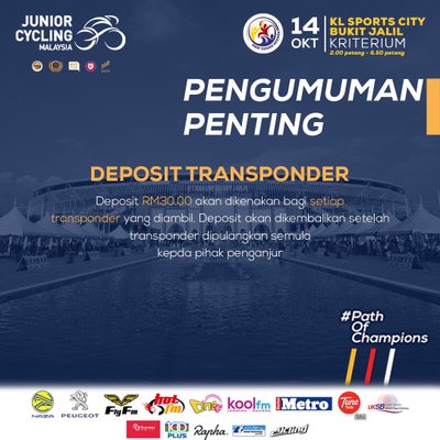 Pelumba perlu membayar RM30.00 semasa mengambil transponder sebagai deposit. Deposit akan dikembalikan setelah transponder dipulangkan.